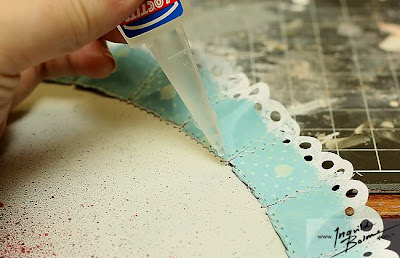 Step Twenty: Use a strong, clear glue to fasten the thread. If you glue on the backside of all the seams, you’ll fasten it better and make sure it won’t loosen or tear off. You’ll also make the whole paper edge stronger. Leave it to dry.Step Twenty-One: Now your background paper with a handmade paper lace edge should look like this and will be ready to decorate as desired.